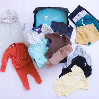 Many of our new parent customers like to start with a curated mix of sleeveless bodysuits, collared bodysuits, crewneck or turtleneck bodysuits, and even magnetic bodysuits that make dressing a breeze!